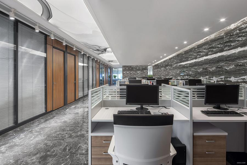 設(shè)計(jì)理念:該辦公室裝修設(shè)計(jì)項(xiàng)目位于深圳福田區(qū),設(shè)計(jì)師以“墨與影”為主要涉及元素。讓墨與影流動(dòng)貫穿整個(gè)辦公空間。展現(xiàn)出國(guó)人親近自然,天人合一的思想。同時(shí)解決了炫光的照明困擾。仿海浪灰石材磚在空間里多處使用,強(qiáng)調(diào)出自然氣息的流動(dòng),讓空間靈動(dòng)并得以延申。簡(jiǎn)練筆觸蘊(yùn)含著儒商的溫文爾雅。并洋溢出文人的灑脫。空間里有多處中式陳設(shè)的點(diǎn)綴進(jìn)一步提升了辦公空間雅致與尊貴。