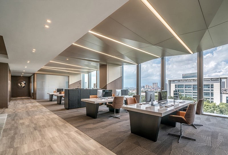 辦公空間的整體動線布局,以人為本。運用暖系色調融合啡色作為點綴,質感豐富,對比分明,體現了大都會的時代感。大氣及細致并存,將建筑與藝術結合,展現剛柔并重,美觀與實用兼備的辦公空間。