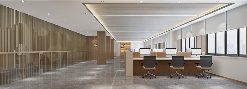 設計理念:該項目為藥業企業辦公樓裝修,整個空間裝修風格為新中式,選用木色作為主要色調,黑白色和金屬色描畫出輪廓,展現溫馨親和并且體現出作為辦公空間的大氣感。設計師在滿足基本功能需求的前提下,借助空間架構與細節設計,呈現空間的藝術性和當代性。該裝修設計項目是一個企業集團辦公樓內的餐廳空間,包括一層的員工餐廳和三層的餐廳包間。設計一樓的員工餐廳主要體現干凈整潔明亮的特點。大開敞的就餐空間采光明亮,簡潔而鮮明的內飾與環境自然融為一體。讓人在獲得無盡放松心情的同時,感受古與今的文化碰撞和獨樹一幟的品牌力量。包間的色調以灰白色、古銅色為主打色調,咖色原木色點綴,整個空間溫雅而舒適, 沉穩而大氣。