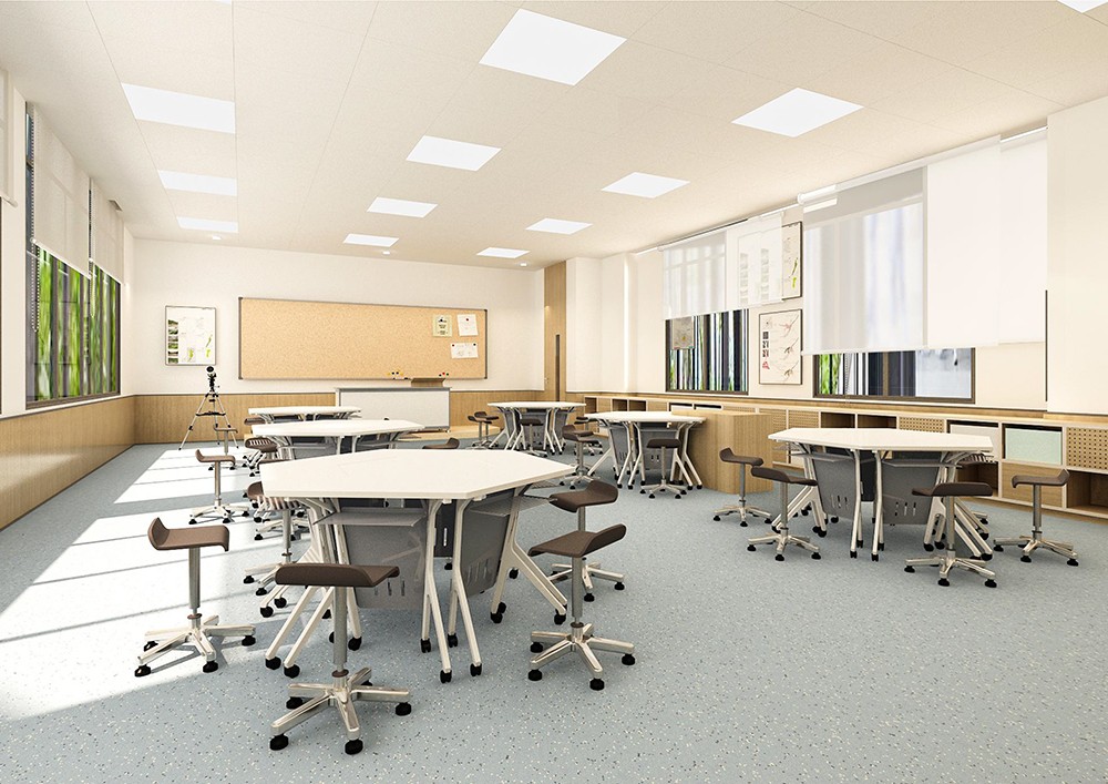 設計理念:將現代社會的教育概念、形態(tài)和特征和科學的規(guī)劃融入設計中,根據學校未來發(fā)展與師生的需求充分發(fā)揮空間想象以獨特的材料選擇、合理的構造、新穎的色彩,打造一個體現學校凝聚力、精神、文化底蘊的空間。為廣科附屬第一學校學子創(chuàng)造出充滿書香、溫馨、創(chuàng)新的學習環(huán)境。在設計中融入時代元素,體現新的綜全觀念、人文觀念、時空觀念、系統觀念、信息觀念、高科技觀念等。