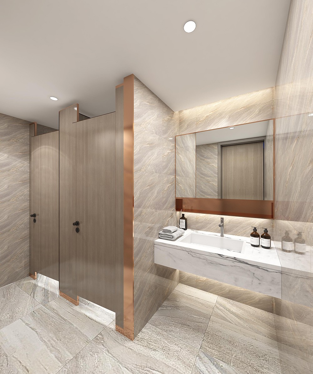 設計理念:室外開闊的明堂,水流猶如天上之水祥降而下,營造來水環繞的景觀。圍欄上跳動的線條,與天上的星空相接點點的繁星,流光似水。帶有韻味的用餐環境,以山作為背景,加上水波紋作天花,這樣可以營造一個山環水抱的祥和景象,寓意著四海朋友匯聚的地方。