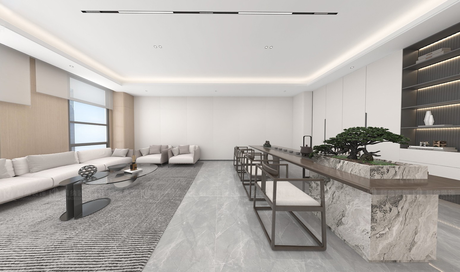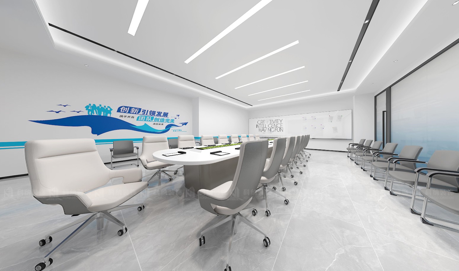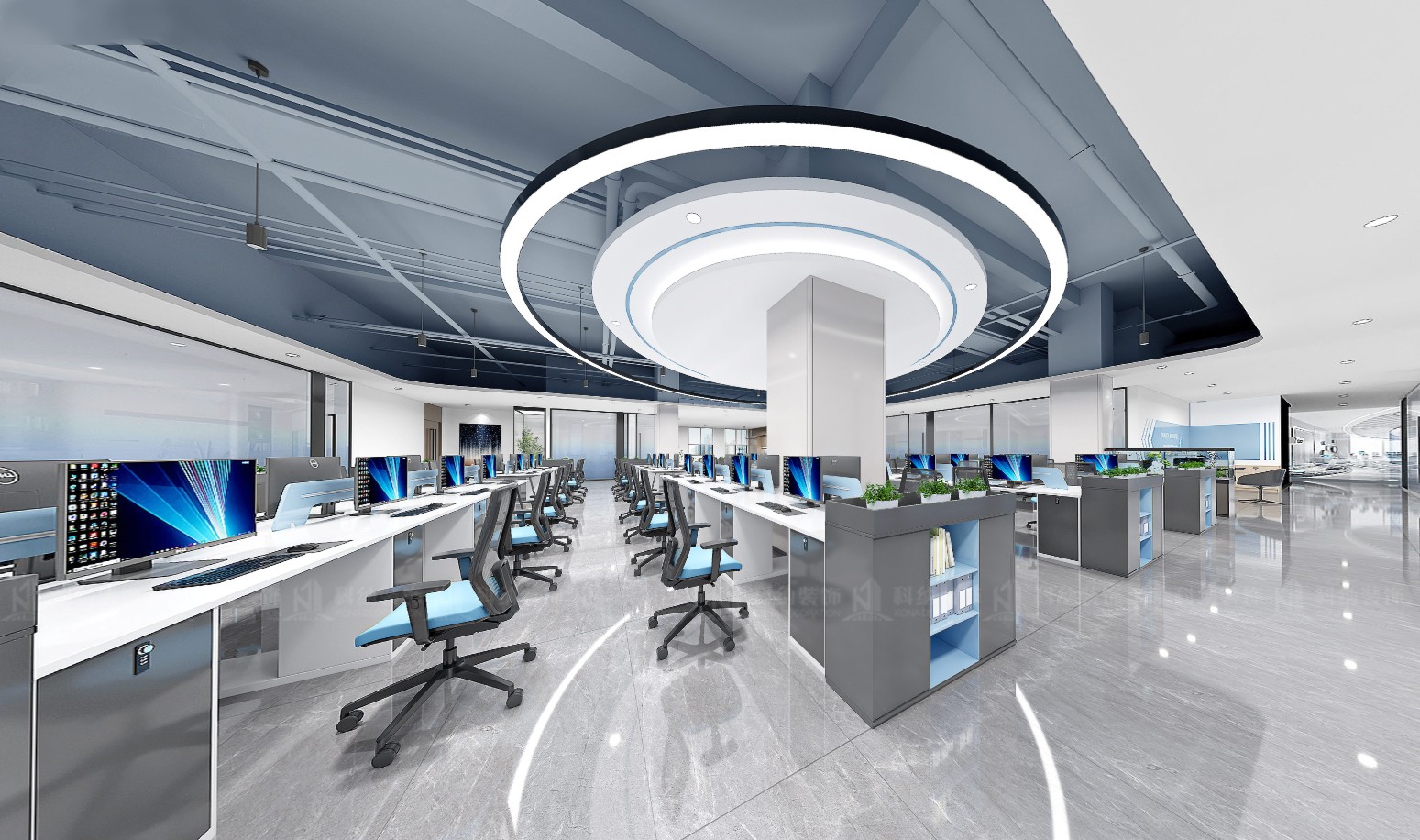 設計理念:本方案采用極簡的設計手法,融合科技元素,選用現代新型材料和中性色調,搭配動態照明,營造出專業活力的辦公氛圍。通透的玻璃墻設計,冷色調主調搭配流暢的天花板線條,再加上獨特的燈光設計,營造出滿滿的未來感。整體的辦公空間強調開放性、靈活性體更彰顯出了企業的創新形象。