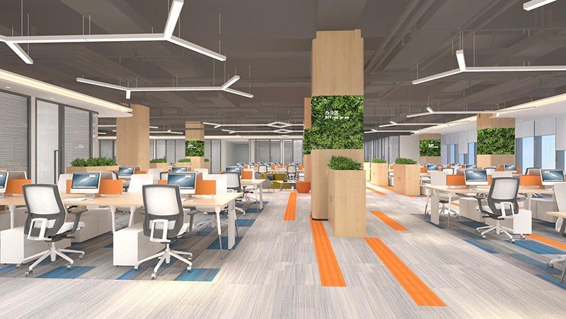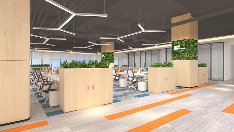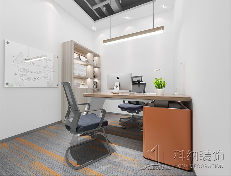辦公室的前臺以原木色調為主,更貼近工業風的自然空間的整體裝飾當中傳達一種北歐風情,流線型的線條燈線條使整個空間顯得生動有趣,書信的顏色,簡單的搭配,營造輕松愉快的氣氛,反映出企業的文化理念,同時也傳達了企業對員工的人文情懷。