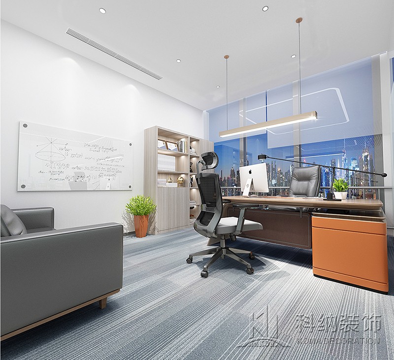 經理辦公室整體的空間營造上以時尚簡約為主,在輕松釋然的柔和氛圍中,為使用者創建一個舒適的空間。