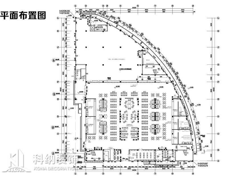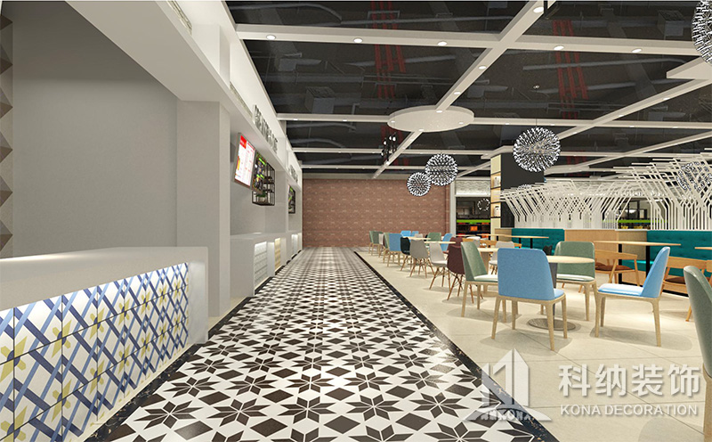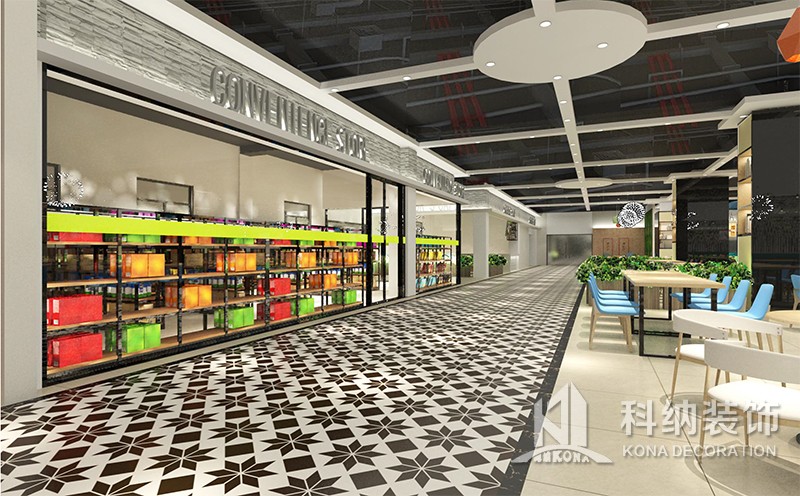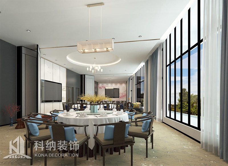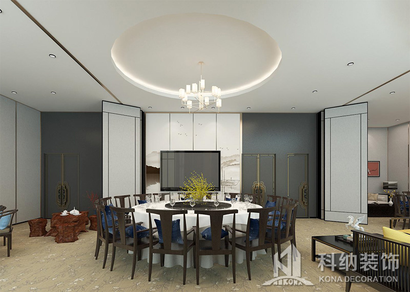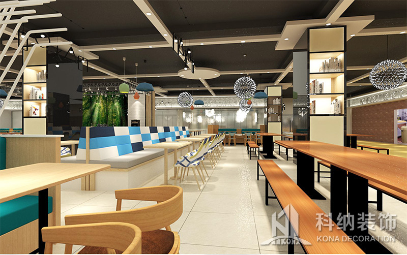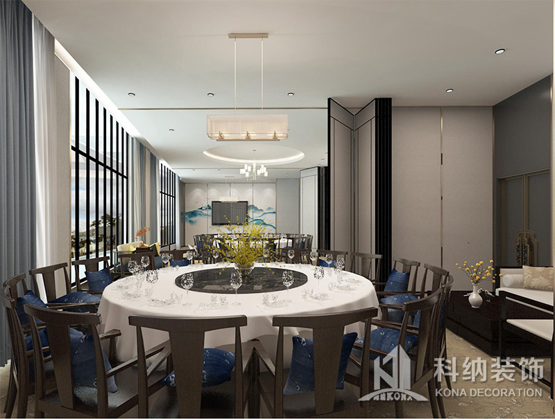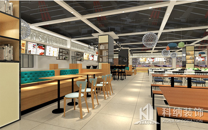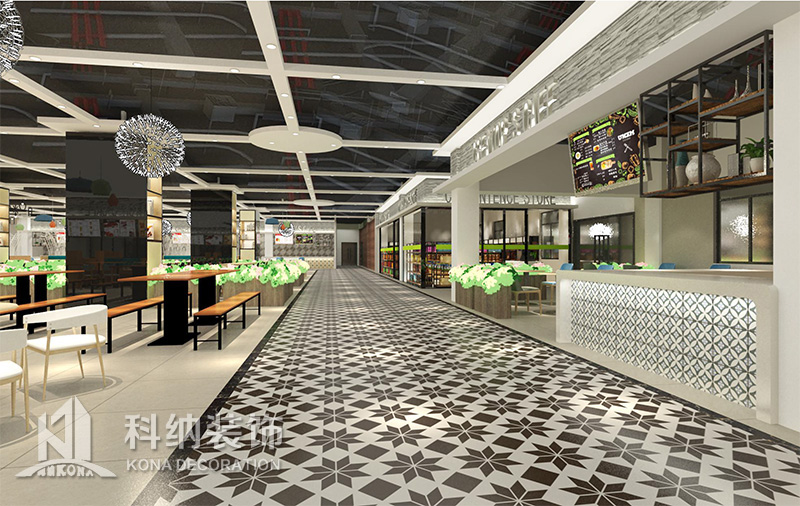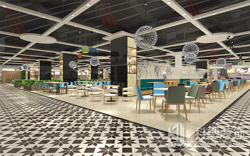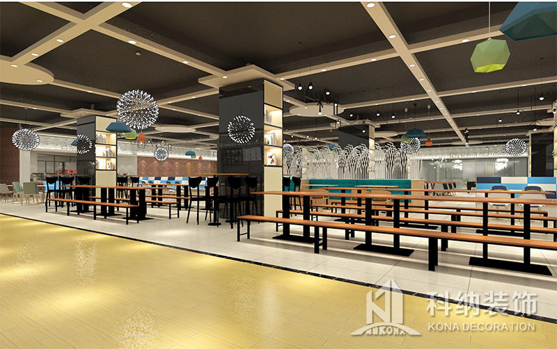 設計理念:該項目為嶺南職業學院清遠校區休閑餐廳,一樓可同時容納723人數,二樓513人。設置有廚房、就餐區、品牌門店、多功能活動大廳、休閑區、自助餐區、接待包房等多個區域。設計師通過可移動屏風隔斷墻實現包廂可變性,一個大包廂或2-3個小包廂之間的變換,可根據用餐人數決定空間的大小。餐廳不僅僅是用餐的功能,更是一個社交與體驗的場所,設計師在空間中設定了多種用餐場景,同時通過區域的劃分搭配不同座位的組合方式,從2人位到12人位,滿足了不同場景下的用餐需求。中心區域利用綠植劃分出來,使空間彼此分隔又能保持空間的通透。視線透過折線陣列的間隙,讓隔斷若實若虛。包房內是傳統的中式宴請圓桌,和依舊灰色調為主的空間氛圍。墻面的裝飾畫,沒有濃墨重彩的痕跡,只是寥寥幾筆,將所有的刻意掩埋。