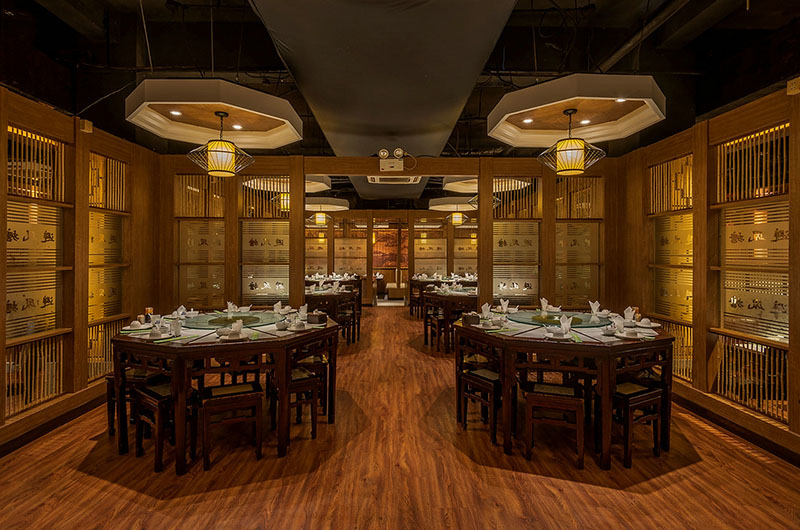 設計理念:本餐廳裝修設計案例設計師將餐廳的整體風格定位為中式新古典風格,突出傳統、親民的特點。整個餐廳室內空間古樸整潔,恍如清末民初的酒樓茶館,同時設計師通過家具與固有的文化基因與現代相結合,展現當代多元文化的世界概念。