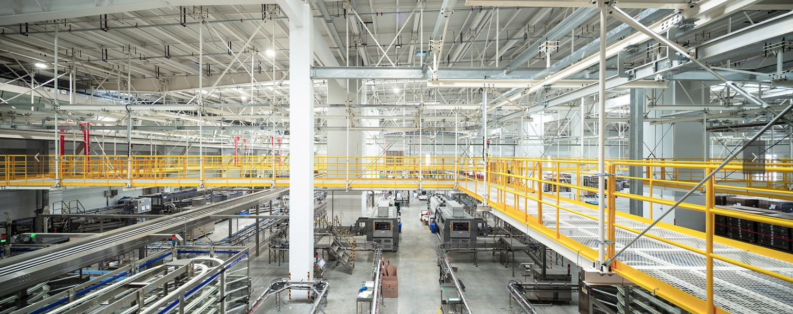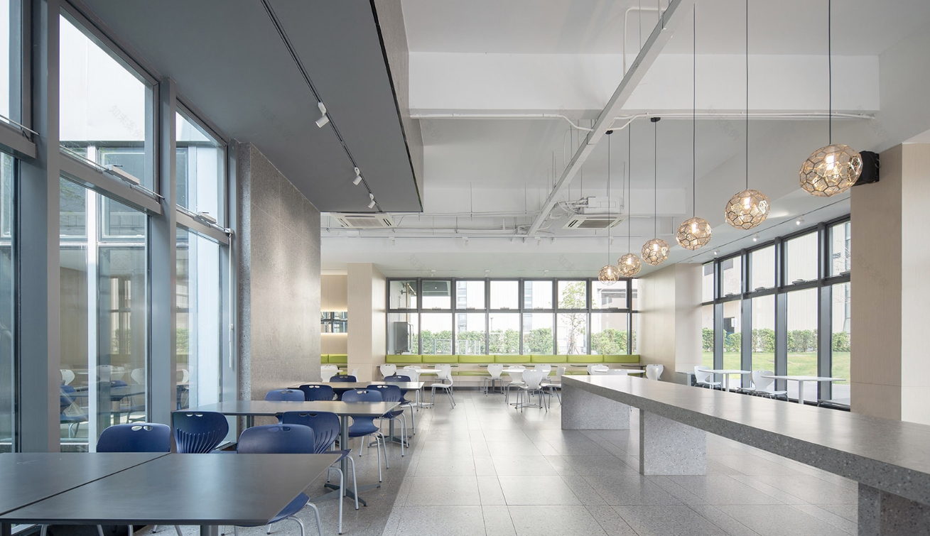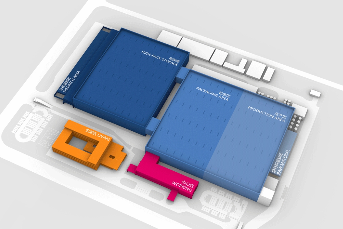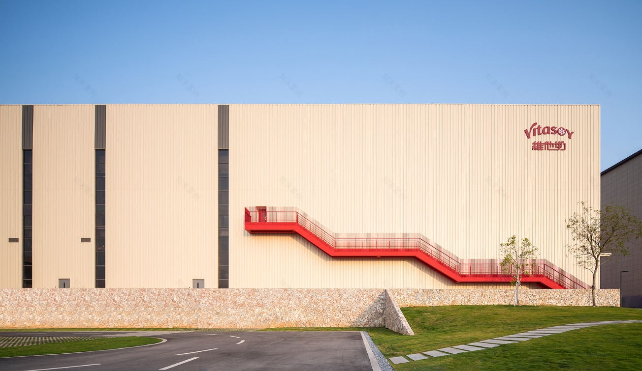 設(shè)計理念:維他奶東莞工廠以實用性、經(jīng)濟性和流線組織為設(shè)計關(guān)鍵驅(qū)動因素,同時考慮工藝需求和工廠使用體驗,打造出一座專業(yè)且現(xiàn)代化的工廠。除了考慮工藝需求外,我們還注重工廠的使用體驗。維他奶東莞總工廠占地約150畝,能夠同時滿足生產(chǎn)、辦公及員工宿舍等基本功能。這樣“三件套”的功能配置,在東莞的工廠中不算特別,但區(qū)別于其他工廠只為生產(chǎn)的糟糕環(huán)境,我們在設(shè)計時將廠前區(qū)、生活區(qū)、生產(chǎn)區(qū)通過周界系統(tǒng)實現(xiàn)分區(qū)管理、增強體驗度,讓真正的打工人有質(zhì)量的工作與生活。