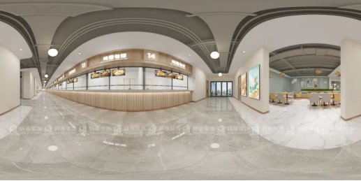 學校食堂規劃為多個餐廳單元的組合,學校就餐特點是瞬時就餐人流量很大,所以在點餐區預留了足夠的空間。