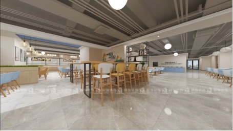 學校食堂裝修時,還要注意墻面和頂面的色彩搭配要協調。墻面采用了耐磨的材料,在人流量較多的空間區域,采用耐磨漆能夠防止出現掉漆的現象。