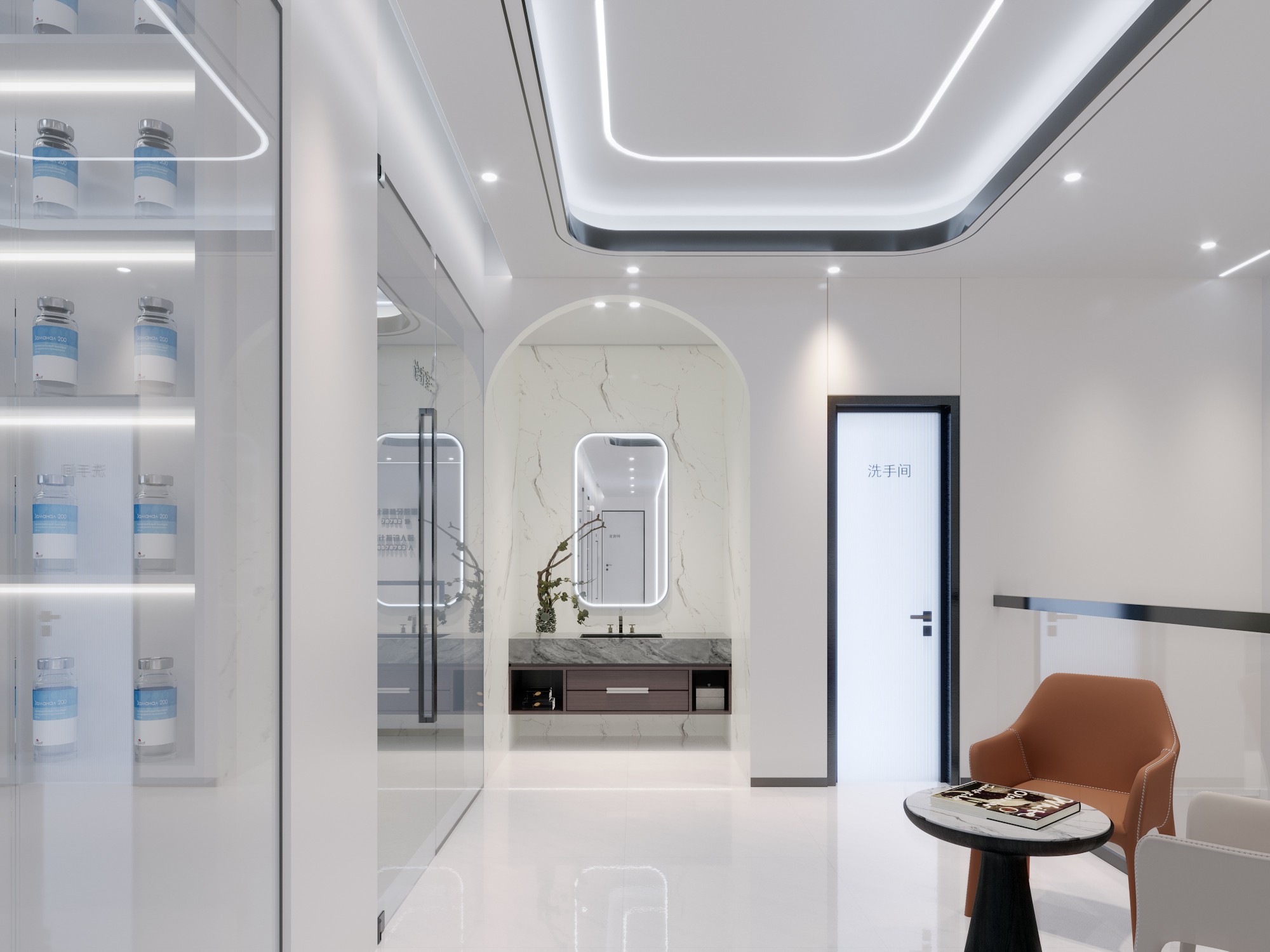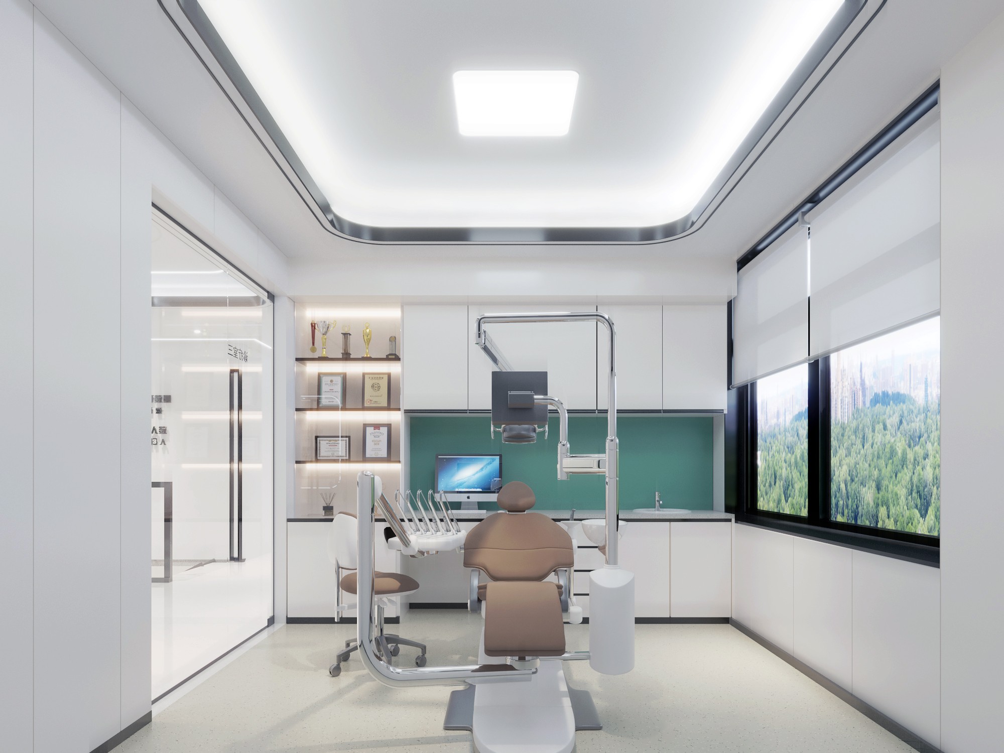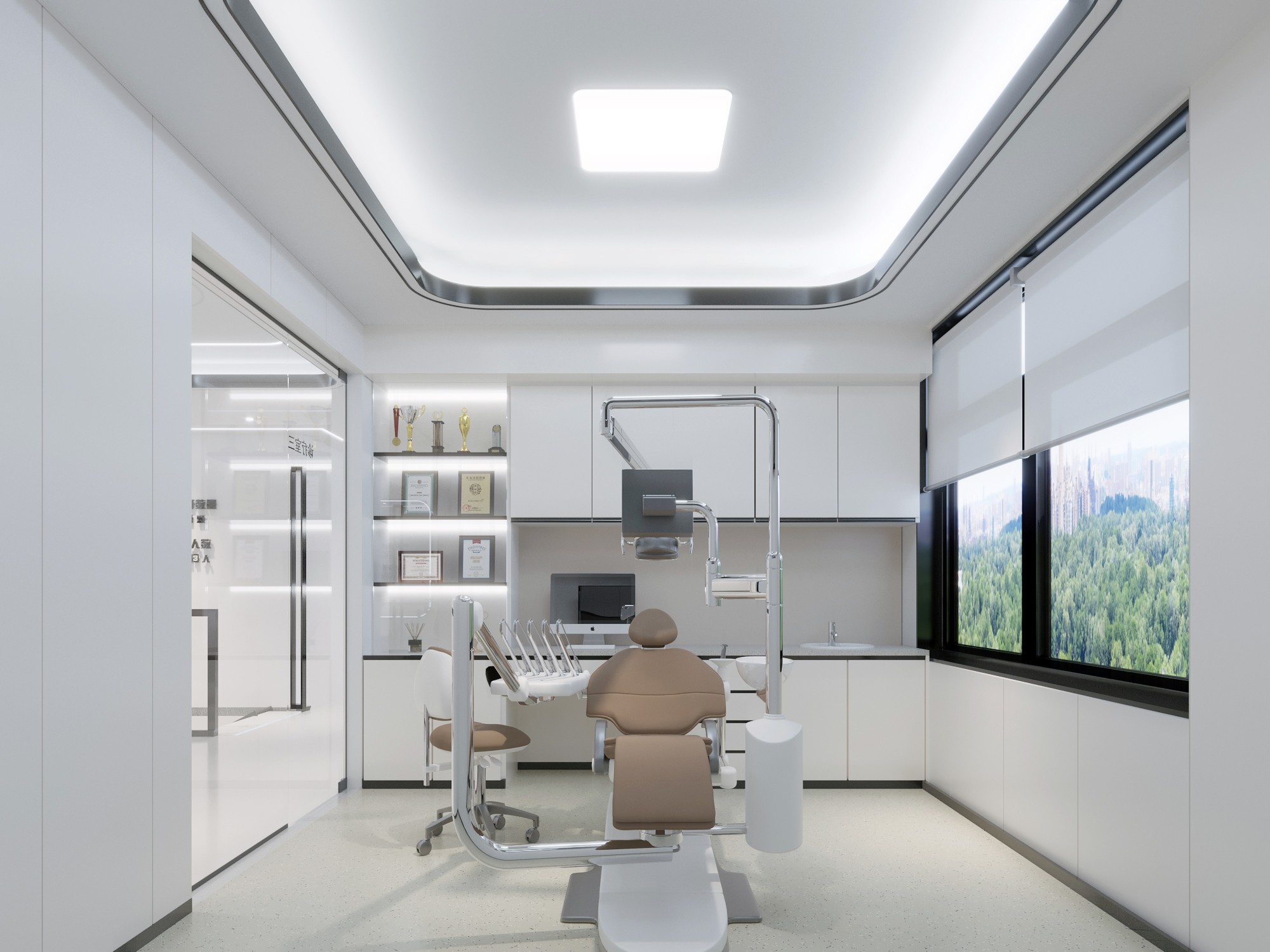 設(shè)計理念:融合科技質(zhì)感的材料元素,強調(diào)收納設(shè)計的標(biāo)準(zhǔn)化,營造清新簡潔、光亮通透的空間氛圍,同時注重空間色彩搭配和細(xì)節(jié)處理,打破傳統(tǒng)醫(yī)療空間形象,呈現(xiàn)出新型高端醫(yī)療空間設(shè)計趨勢。將潔白、健康的護(hù)齒理念融合當(dāng)代美學(xué),在細(xì)節(jié)上強調(diào)收納設(shè)計的標(biāo)準(zhǔn)化,每個細(xì)微局部遵循“不多余、重質(zhì)感”的裝飾原則,同時融入科技質(zhì)感的材料元素,從設(shè)計語言上構(gòu)建。